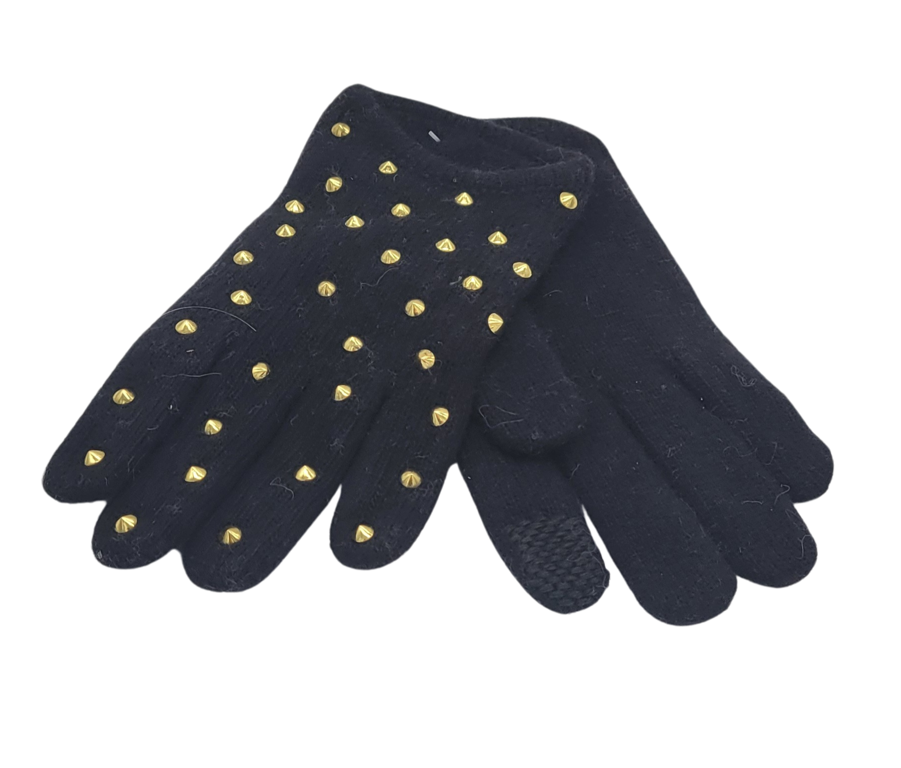 Edgy Gold pyramid studs completely cover this wristlet length cash glove.