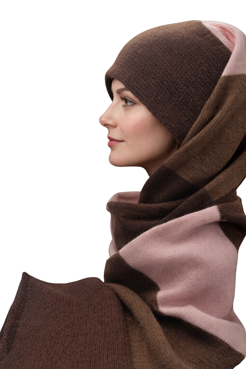 Cashmere SCARF/HAT , Brown/vicuna/soft pink
