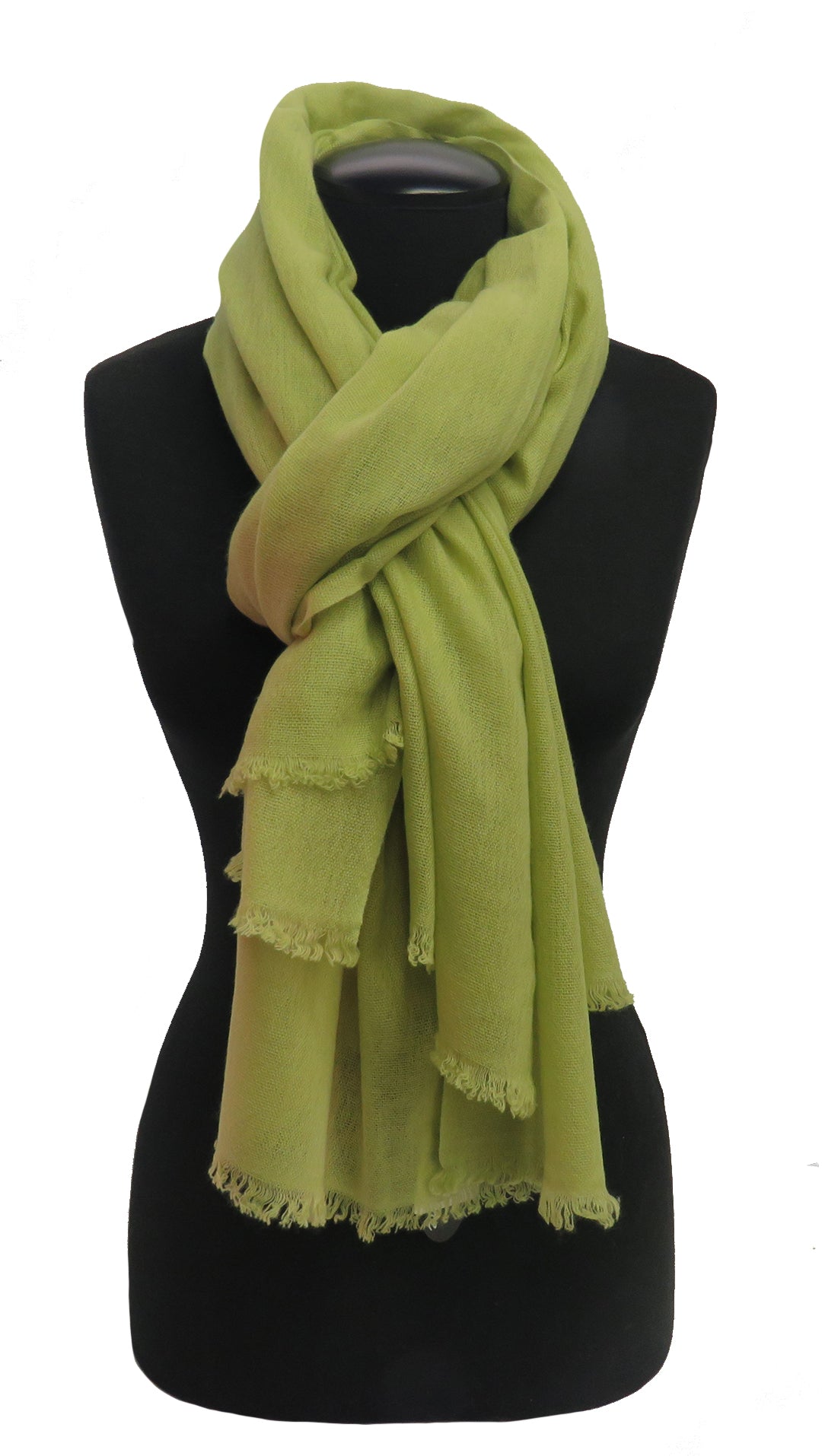Artisan woven Cashmere shawl, lightweight, eyelash fringes, size 32 x 80. Ideal for travel, chilly evening and as a scarf in the winter SPRING HAS SPRUNG , CELERY GREEN