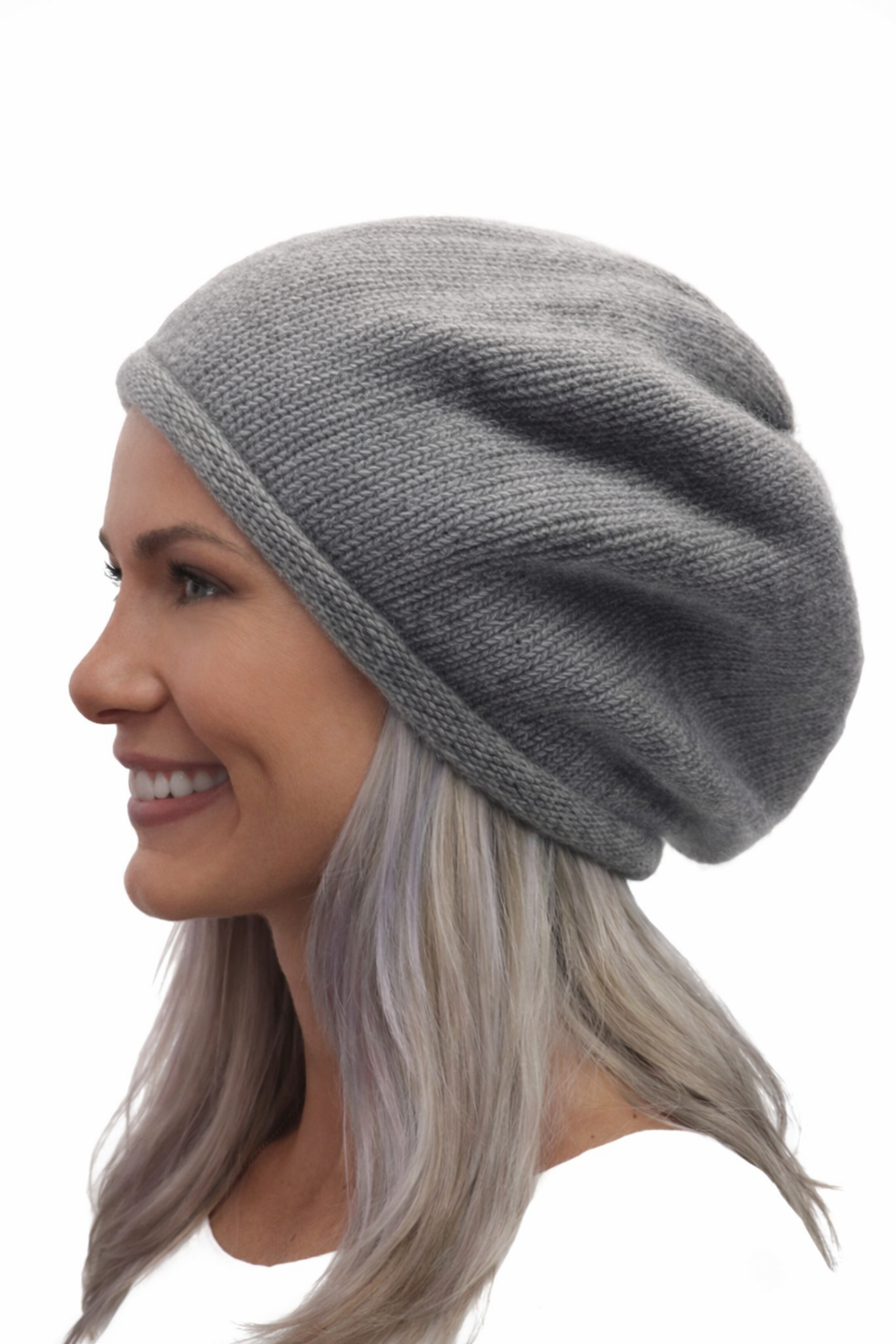 Classic Cashmere Beret . LIght Heather Grey